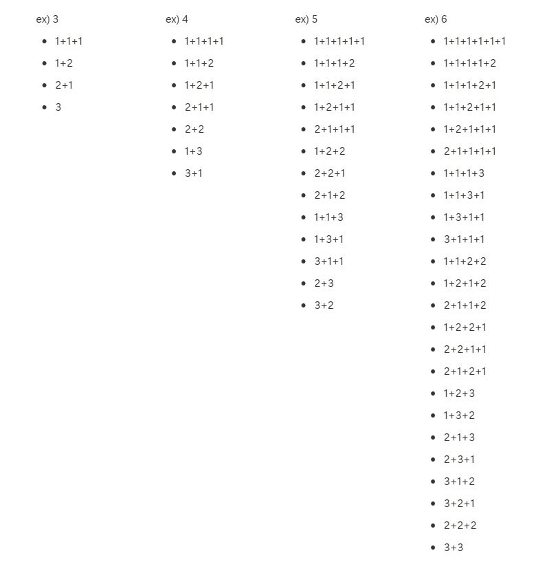 - n이 있을 때, 1,2,3의 합으로 나타내는 방법의 수를 찾기
