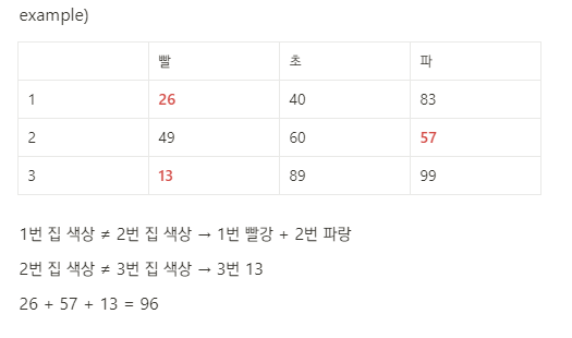 - 모든 집을 칠하는 비용의 MIN 값