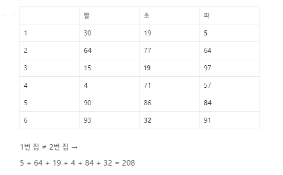- 집을 빨, 초, 파로 칠하는 비용 (1~N번 순서로)