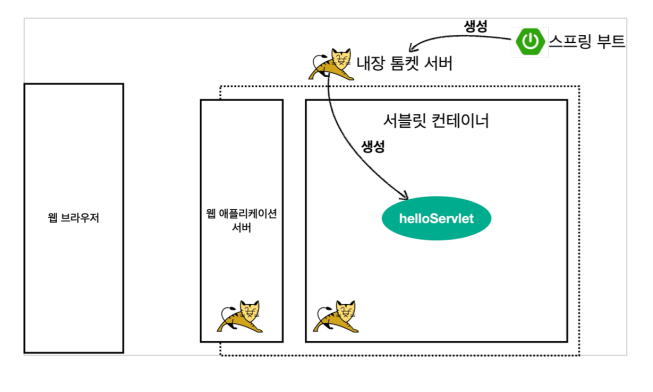 ∵ 스프링 부트는 톰캣 서버를 내장 ⇒ 톰캣 서버 설치 없이 편리하게 서블릿 코드를 실행할 수 있음