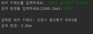 - 특정 위치 키워드, 검색 반경 입력