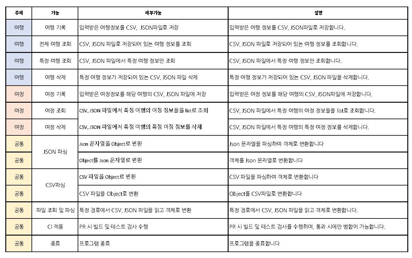 - 여행 정보와 특정 여행의 여정 정보는 데이터 저장 경로에 파일 형태로 저장한다. (CSV, Json)