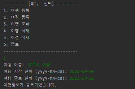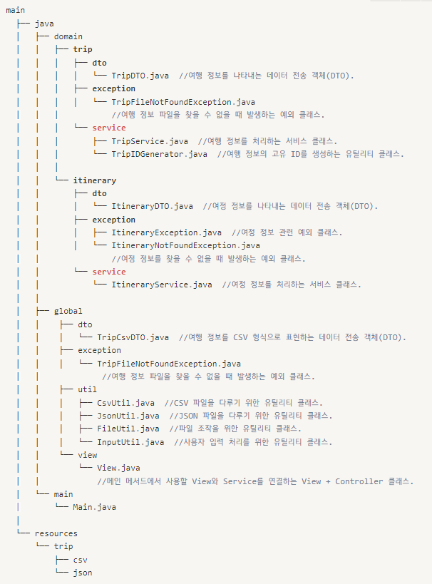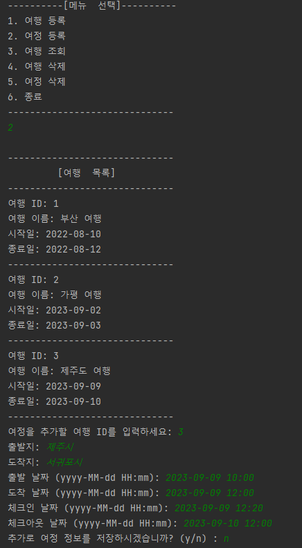 - 여행의 여정 정보를 기록하고 조회하는 Java 애플리케이션 개발한다.