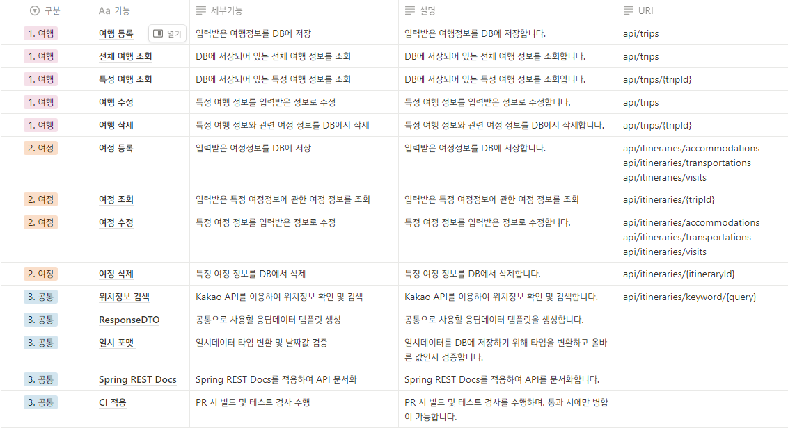 - 여행의 여정 정보를 기록하고 조회하는 Spring Boot 기반 RESTful API 를 개발한다.