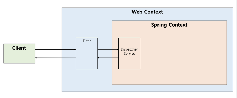 Dispatcher Servlet을 통해 반환되는 응답은 다시 Filter를 거쳐 Client에게 반환 (⚠️)