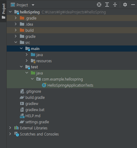 - src/test : test code들과 관련된 source 집합 -> 요즘 개발 트렌드에서는 test 코드가 굉장히 중요