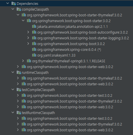 spring 프로젝트를 시작하면, build.gradle에 포함된 라이브러리들을 확인할 수 있다.